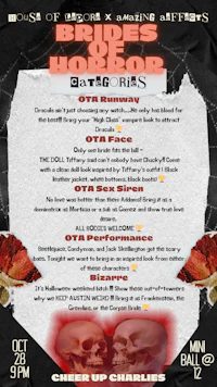 Halloween party, show and a BALL ! Hosts Gothess Jasmine @gothess.jasmine & @houseoflepore Legendary Mother @msgirl6_ Beats: @babiboibitch at @cheerupcharlies ! The lineup is DRIPPINGG with creeps perfect for Halloween season! Featuring @sir.beau.elliot @brigittebandit @bobbypu512 @sinfulpurchase @agentmkultra @kinokino.lol @genderdestruction @pankpupbandit @yvonnafwho and @iffyroma!